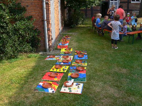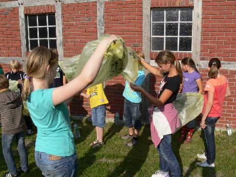 füllen. Für die Verbindung der lockeren Werkstoffe produzierten die Kinder ein