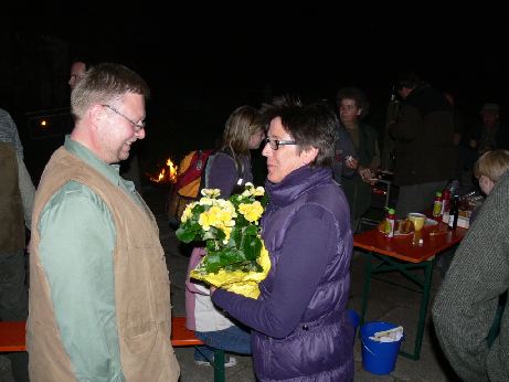 Schneefall und eisiger Ostwind machten den Teilnehmern ganz schön zu schaffen und so waren sie überglücklich, dass zum Abschluss ein großes Lagerfeuer loderte und ein Grill mit Grillgut darauf sowie heiße und kalte Getränke für sie bereitstanden.