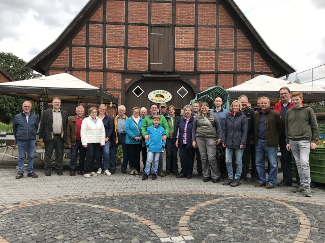 Treff- und Startpunkt des diesjährigen Ausflugs vom Hegering Milte-Einen war bei Familie Geismann in Milte. Bei Sonnenschein warteten dort bereits die Jagdhornbläser und stimmten zur Begrüßung die Signale sammeln der Jäger und Aufbruch zur Jagd an. Mit dem Fahrrad ging es dann durch Feld und Flur Richtung Neuwarendorf zum Hofladen Austermann. Die 24 Teilnehmer im Alter von 10 bis 84 Jahren wurden dort bereits erwartet und erhielten einen spannenden Einblick in Anbau, Ernte und die Weiterverarbeitung der unterschiedlichen Gurkensorten. Johanna Austermann führte die Gruppe kompetent durch Anbau und Produktion und beantwortete die Fragen der interessierten Teilnehmer. Am Ende der Führung gab es zur Freude aller im Hofladen noch Gurken als Präsent, so dass sich jeder auch im Nachgang vom guten Geschmack der lokalen Produkte überzeugen konnte.